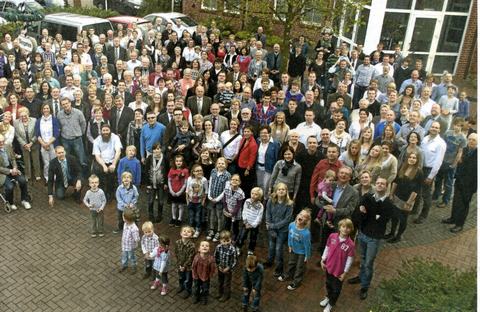 Während einige der etwa 300 erschienenen Familienmitglieder - im Bild nur ein Teil - eine recht kurze Anreise aus Wessum und Umgebung hatten, waren andere aus der Schweiz und sogar Irland angereist. Dass die Familiengeschichte bis ins 17. Jahrhundert zurückverfolgt werden kann, hatten intensive Recherchen verschiedener Familienmitglieder auf dem Gebiet der Ahnenforschung ergeben. Drei Linien konnten zurückverfolgt werden, die nach Rheine, Schöppingen-Gemen und Wessum führten. Die lange Familientradition und die gute Stimmung, die beim jetzigen Zusammentreffen herrschte, legen den Schluss nahe, dass dies nicht das letzte Gebkersche Familienfest gewesen sein wird.